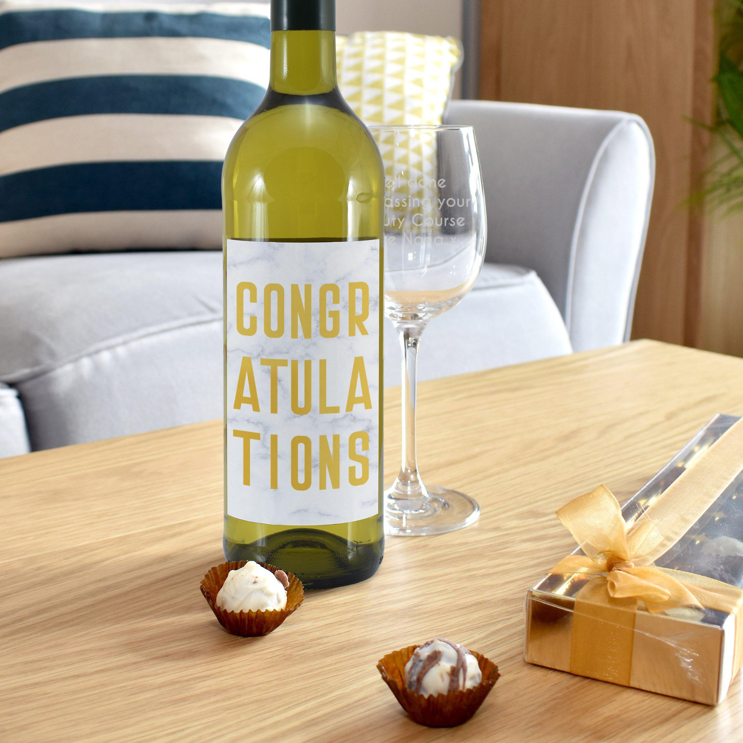 Say congratulations with this personalised gift set. Add your special message over 4 line of 25 characters including spaces to the wine glass. Congratulations is printed in metallic gold on a marble label which is featured on the bottle of wine. Whether it is to say congrats on their new job or for passing their exams, they will love receiving this thoughtful gift.