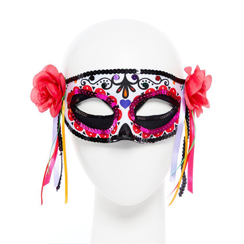 Front View Day of the Dead Masquerade Mask with Ribbons
