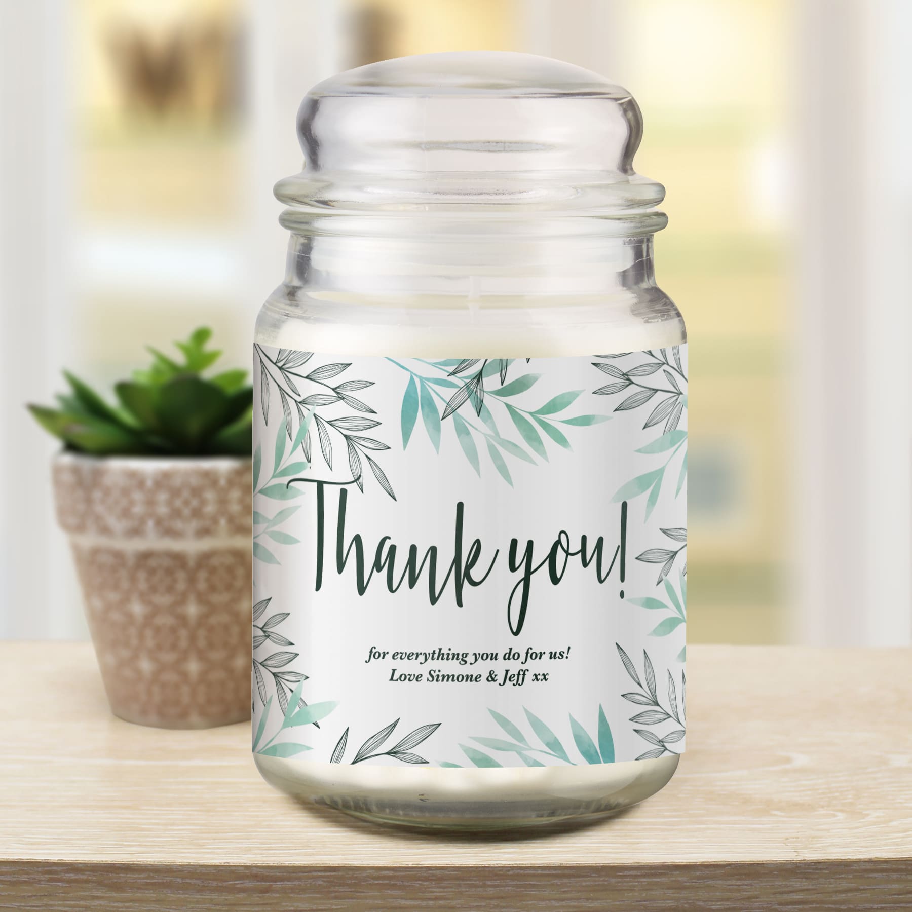 Floral Thank You Candle Jar -  White, Green & Grey Floral Design