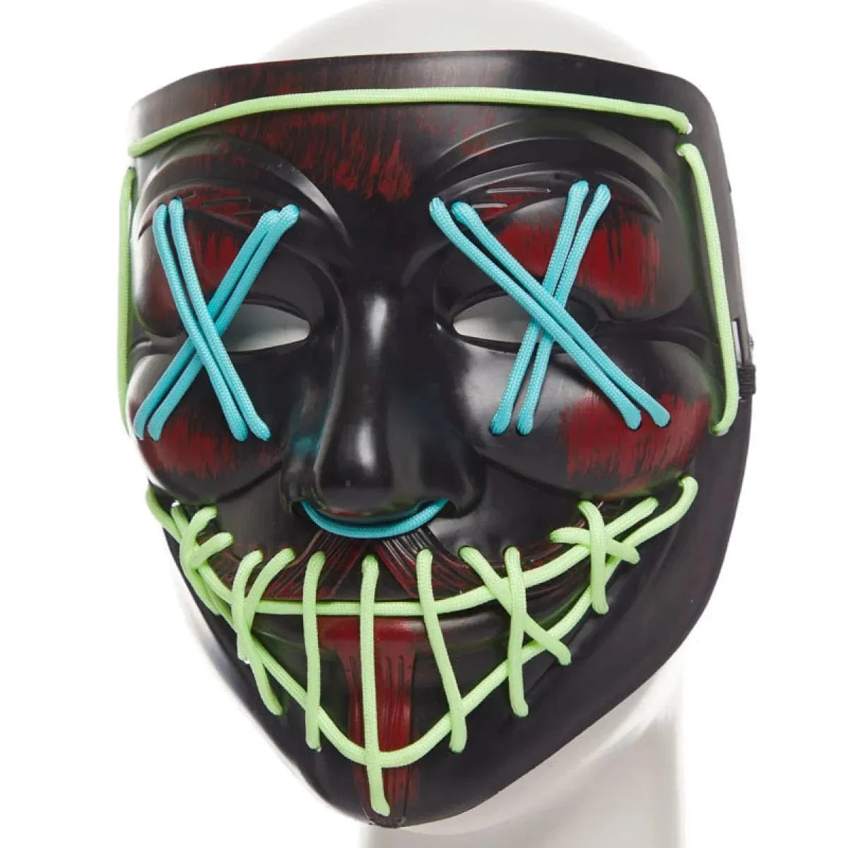 Boost the fright factor of your Halloween costume with this striking Glow in the Dark Green and Blue Mask, highlighted by eerie lace-up details around the eyes and mouth. The real terror lies in the mystery—who could be hiding behind this mask?