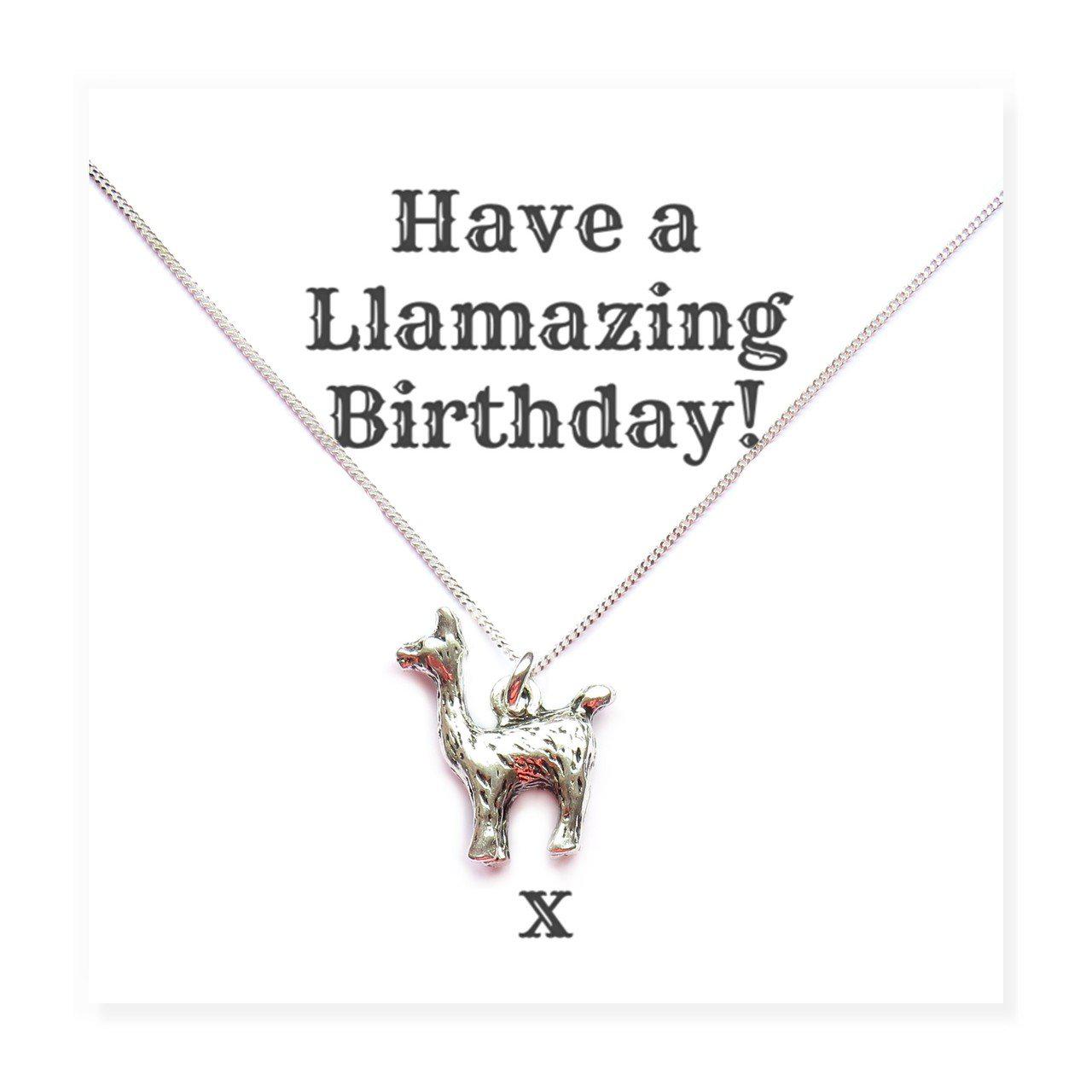Happy Birthday Llama Necklaces on Funny Message Card - Message Reads