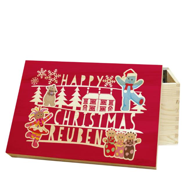 A fantastic ITNG bright and colourful Christmas Eve Box made from pine wood, personalise with a name of up to 15 characters below the fixed text 'Happy Christmas'. Fill with some early presents from Santa Claus as children are always desperate to open presents the night before Christmas.