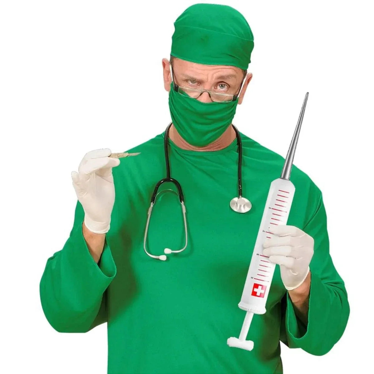 This oversized inflatable syringe, measuring 50cm, is the perfect accessory to complete any doctor or nurse costume. Pair it with some fake blood to create a chillingly realistic effect, ideal for Halloween or any medical-themed event. Make your outfit stand out with this eye-catching prop.
