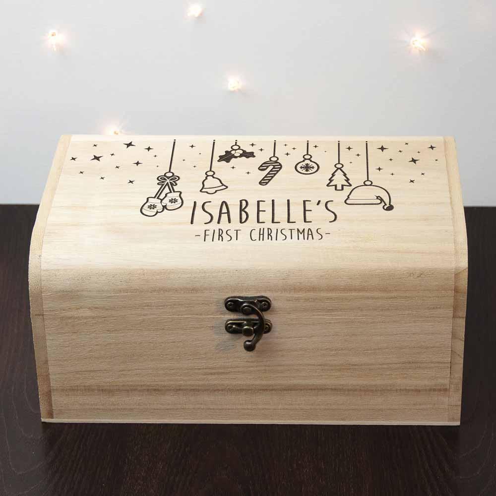 Personalised Baby's First Christmas Eve Chest -  Small Chest With Lid Ajar