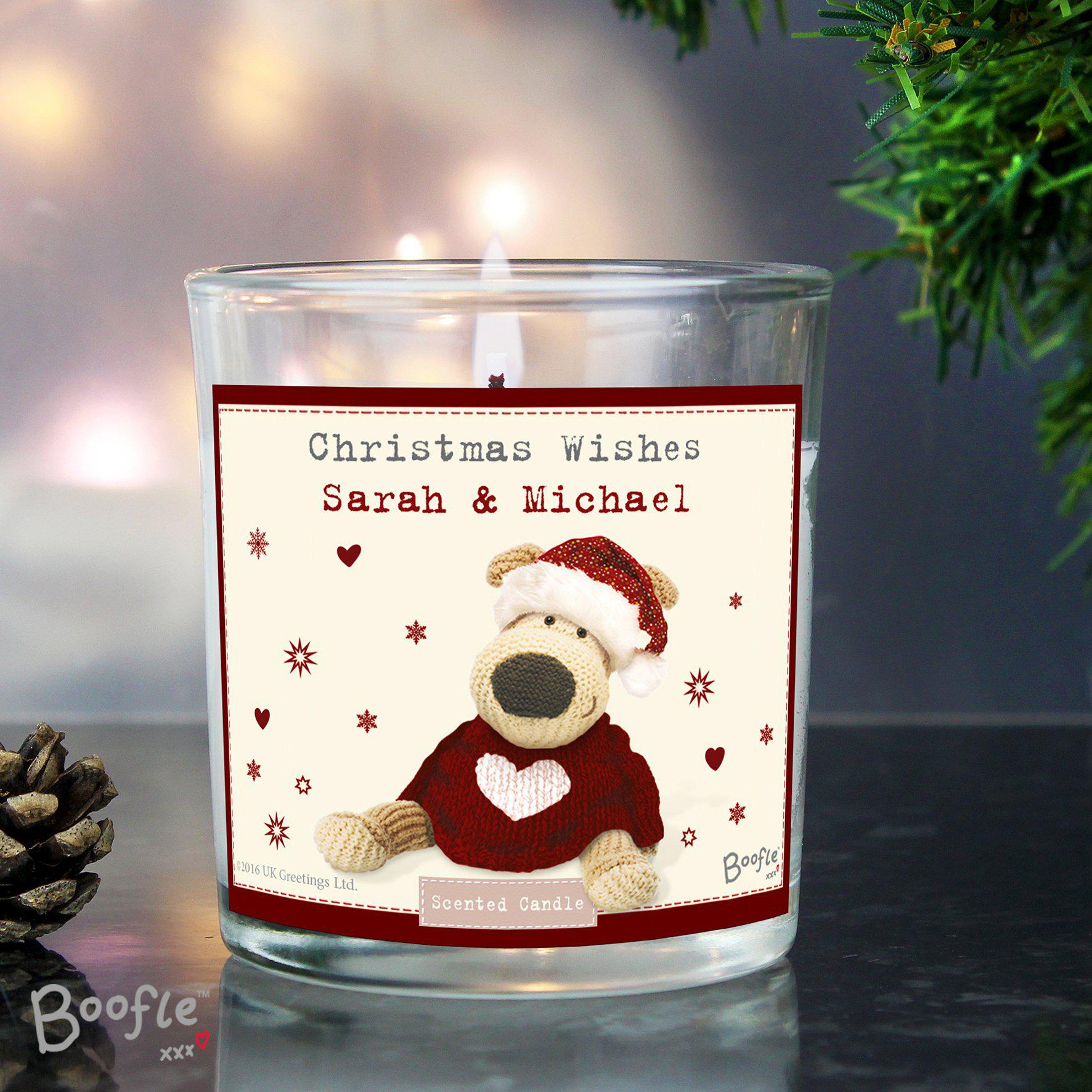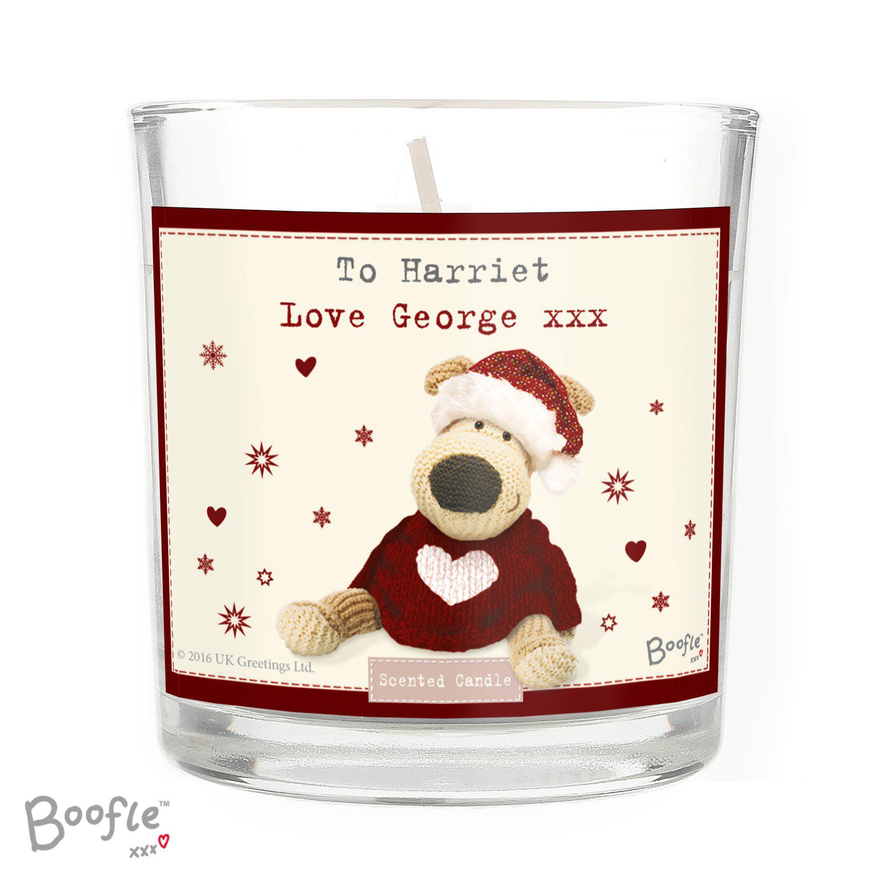 Personalise this 'Boofle' Christmas Love Scented Jar Candle with any message over 2 lines of text, with up to 25 characters per line, that all personalisation is case sensitive and will appear as entered.