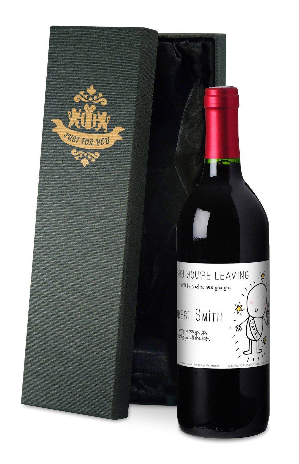 Let this cheeky chappie from the Chilli and Bubbles range join you in saying 'Sorry You're Leaving' to a special someone. The character appears on a personalised leaving champagne bottle label, in the Chilli and Bubbles' style, which also includes the recipient's name and a message from you.