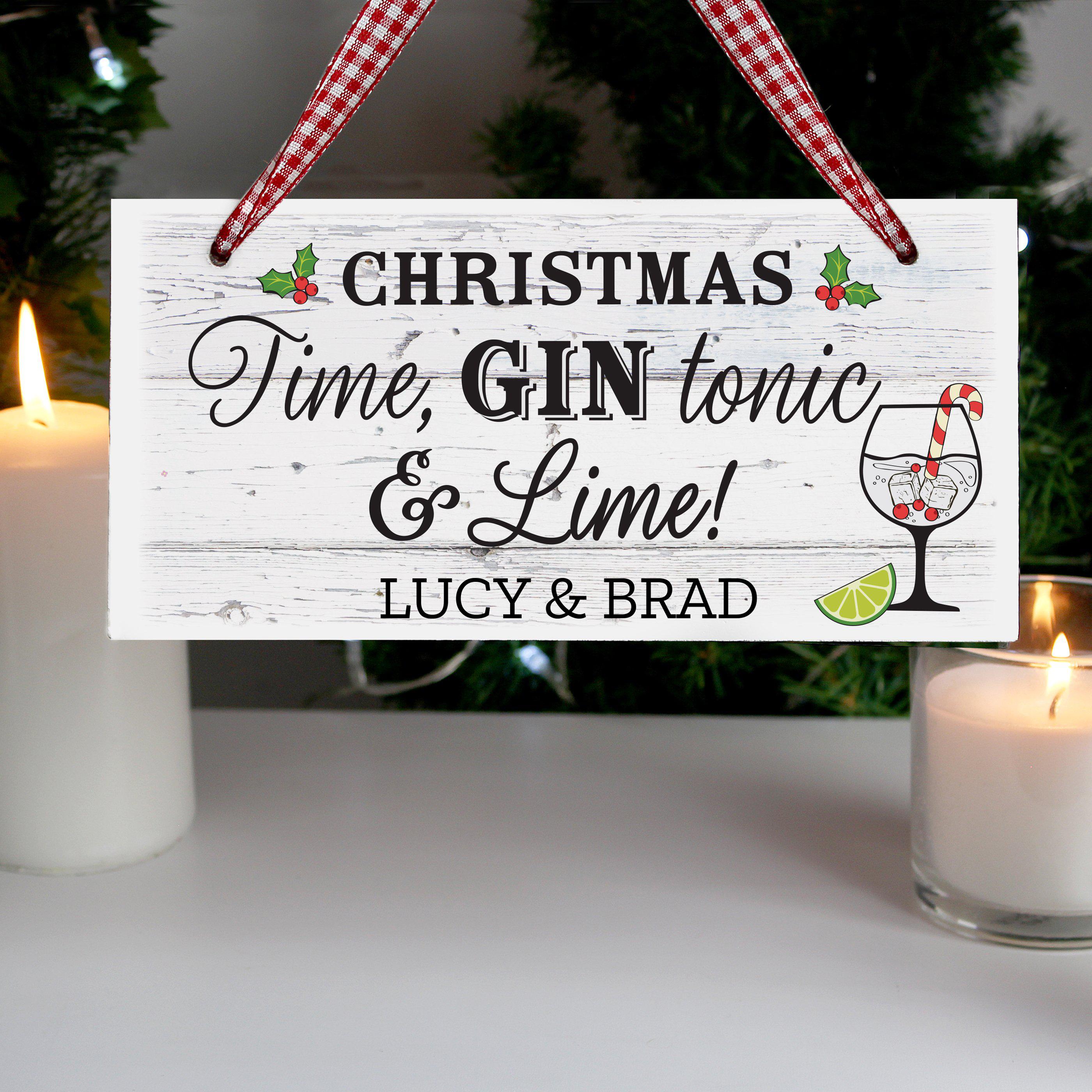 Personalised Christmas Gin Wooden Sign - Personalised For The Johnson's