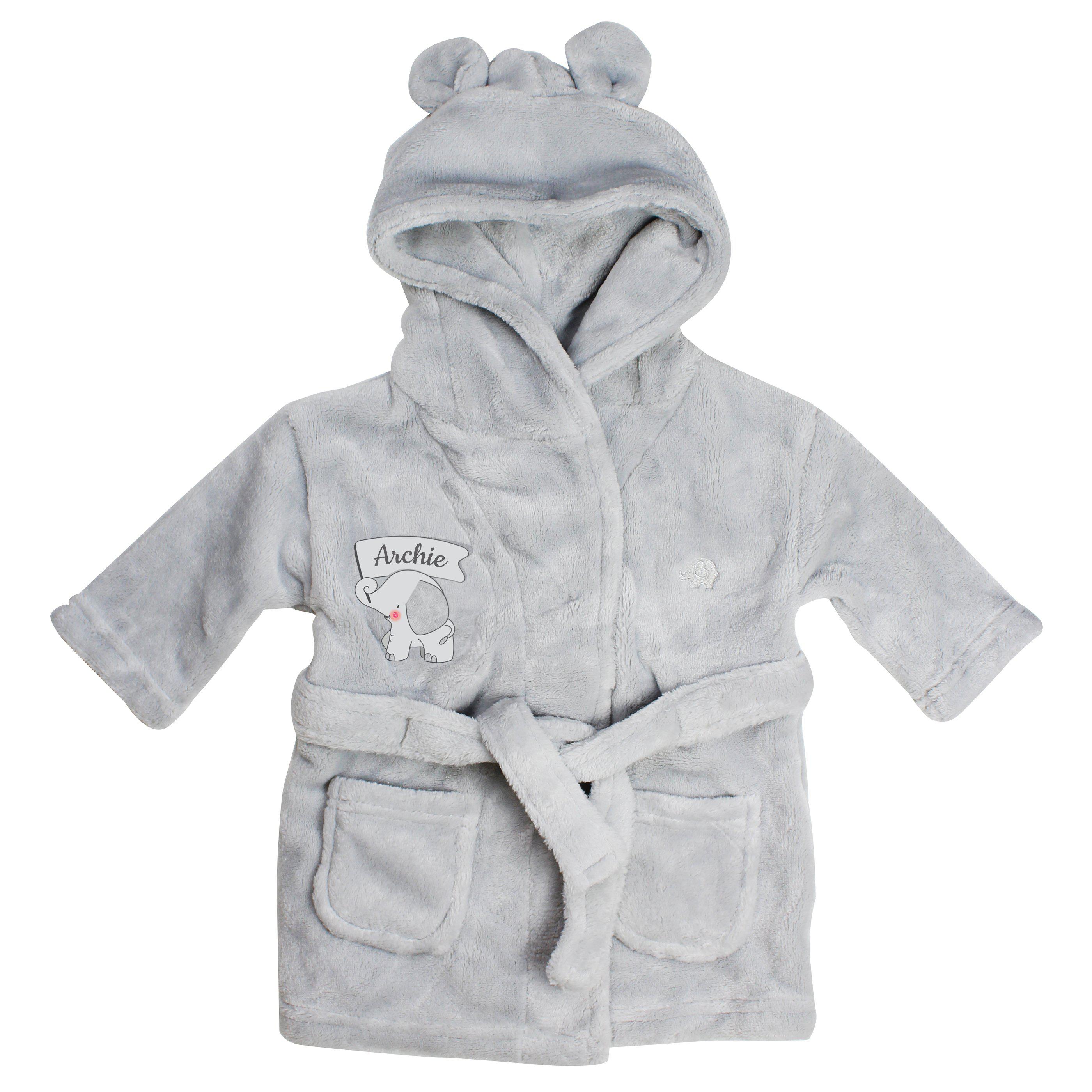 Personalised Elephant 0-6 Months Grey Hooded Baby Dressing Gown