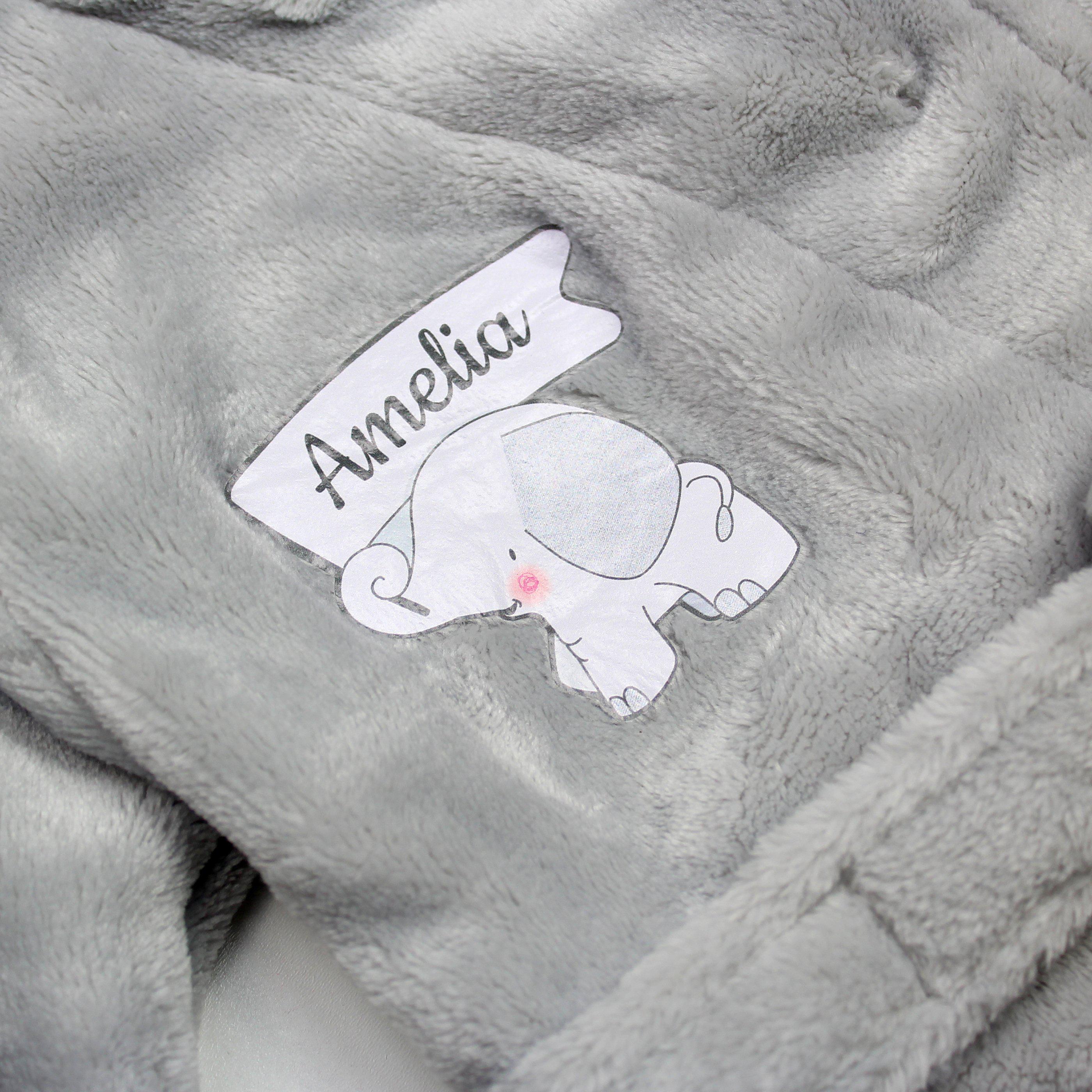 Personalised Elephant 0-6 Months Grey Hooded Baby Dressing Gown -  Personalised For Rosie