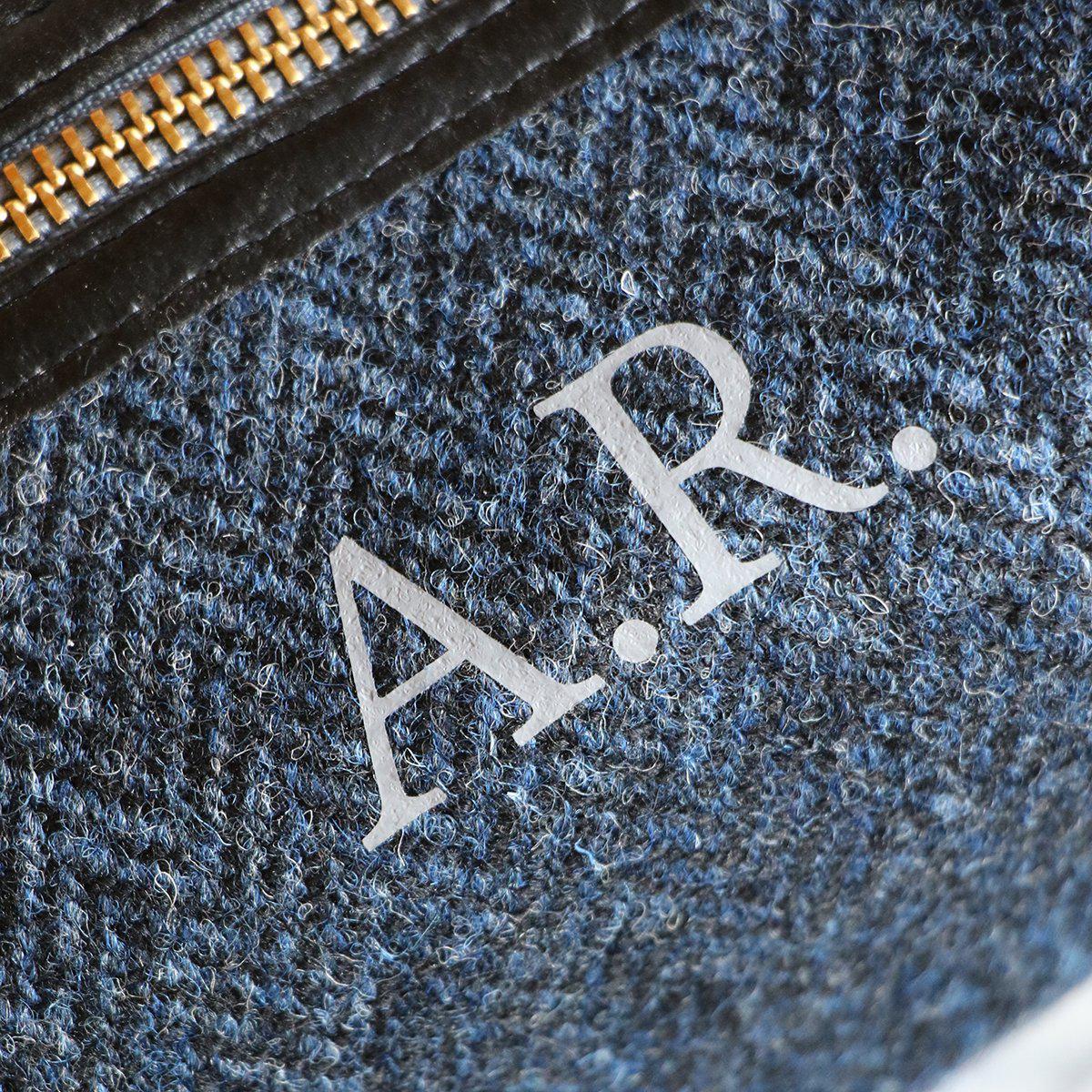 Personalised A.R Engraved On A Harris Tweed Wash Bag