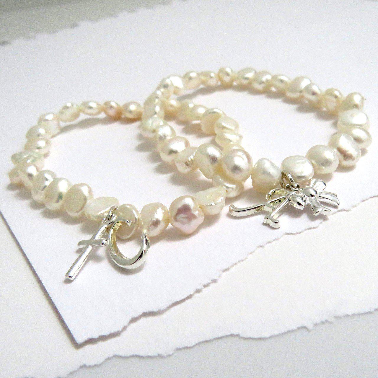 A pretty personalised pearl elasticated stacking bracelet, accompanied with a sterling silver plated initial charm & a sterling silver or rose gold mini charm, a beautiful bracelet for any occasion.