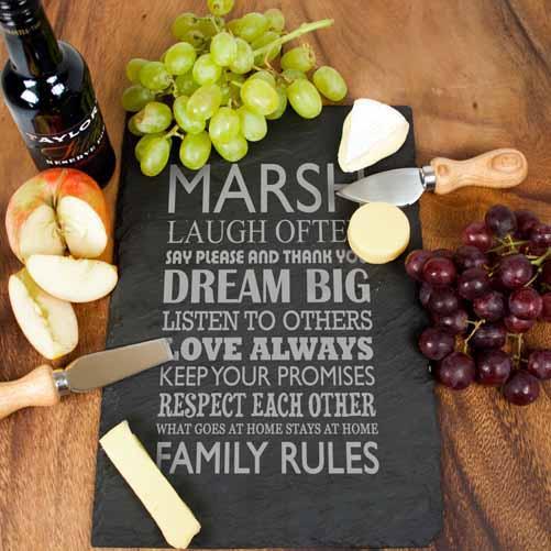 This fun and quirky "Family Rules" slate board is a great gift for the home and is engraved with a set of lovely rules for you and your family to enjoy.