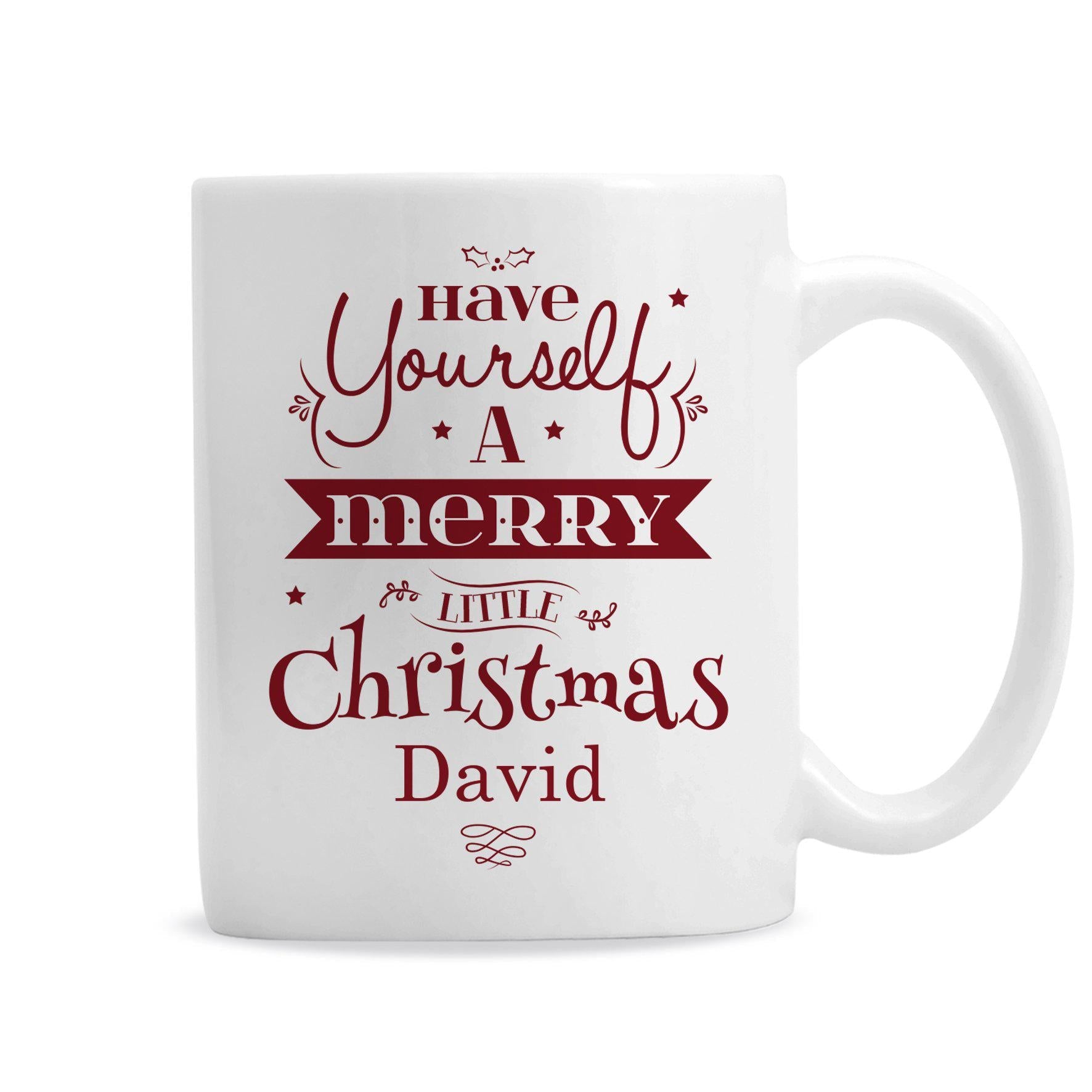 Personalised Merry Little Christmas Mug  - Personalised Name Below Fixed Text