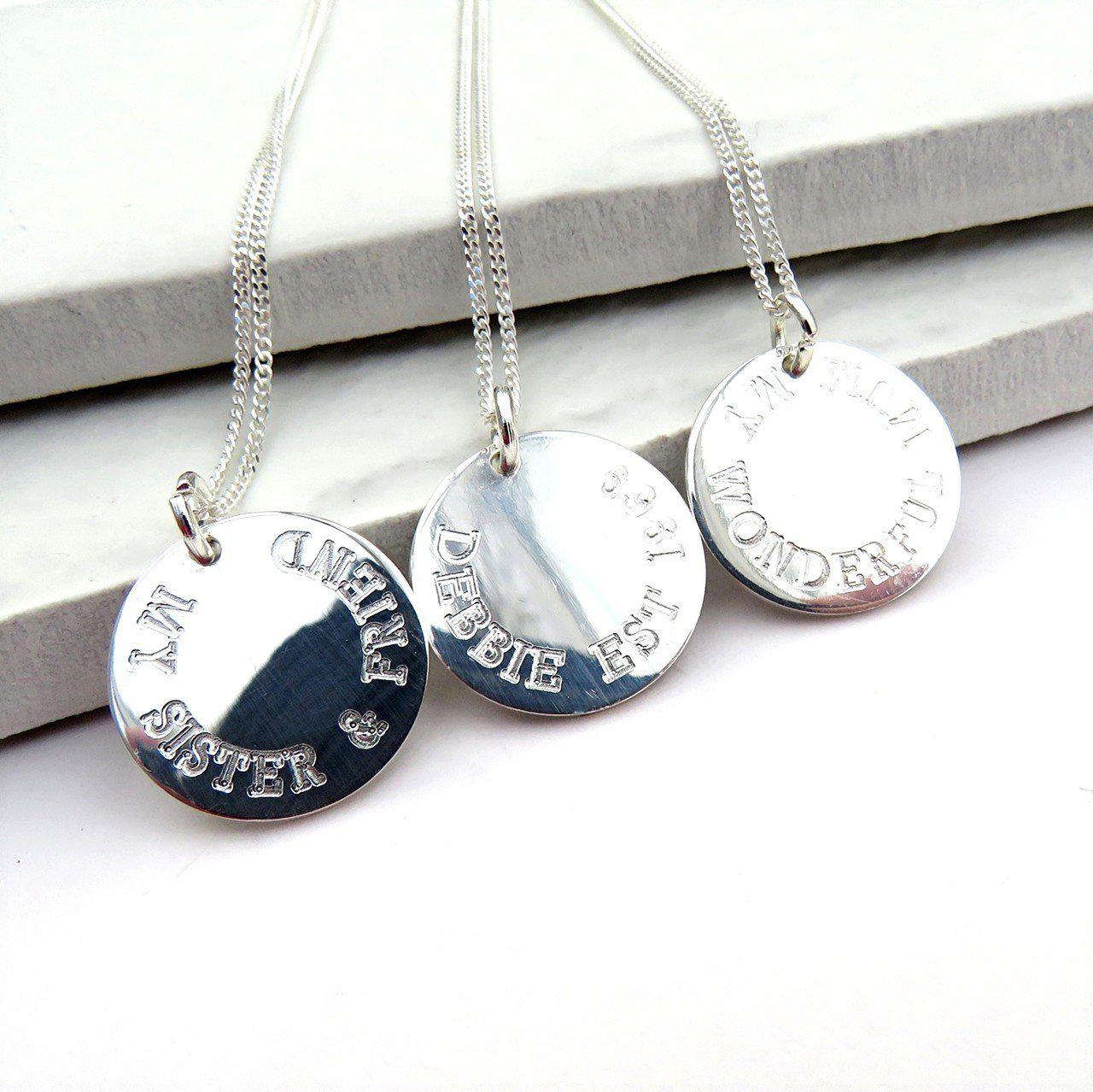 Personalised Sterling Silver Round Charm Necklaces Which Are All Engraved With A Special Message