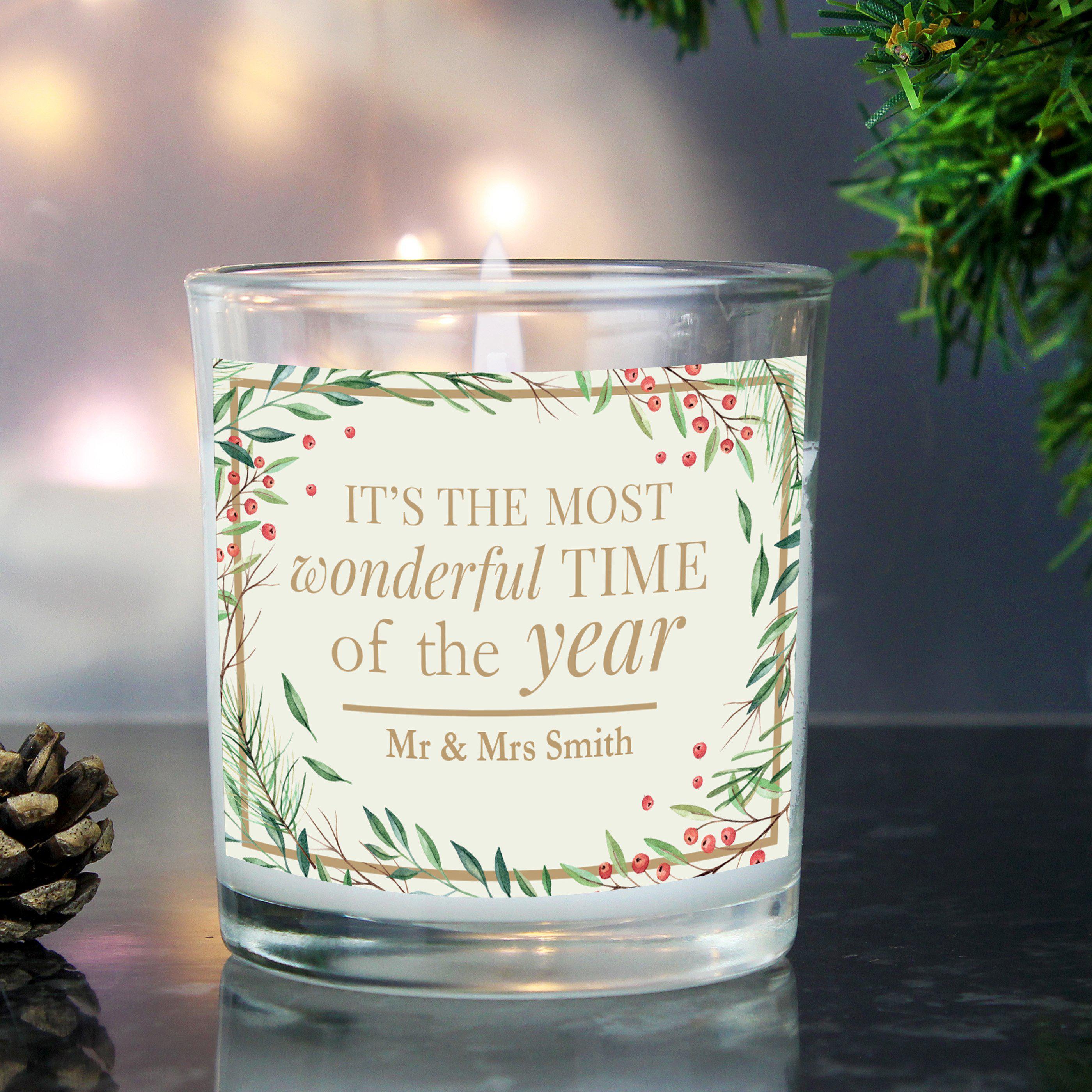 Personalised 'Wonderful Time of The Year' Christmas Scented Jar Candle